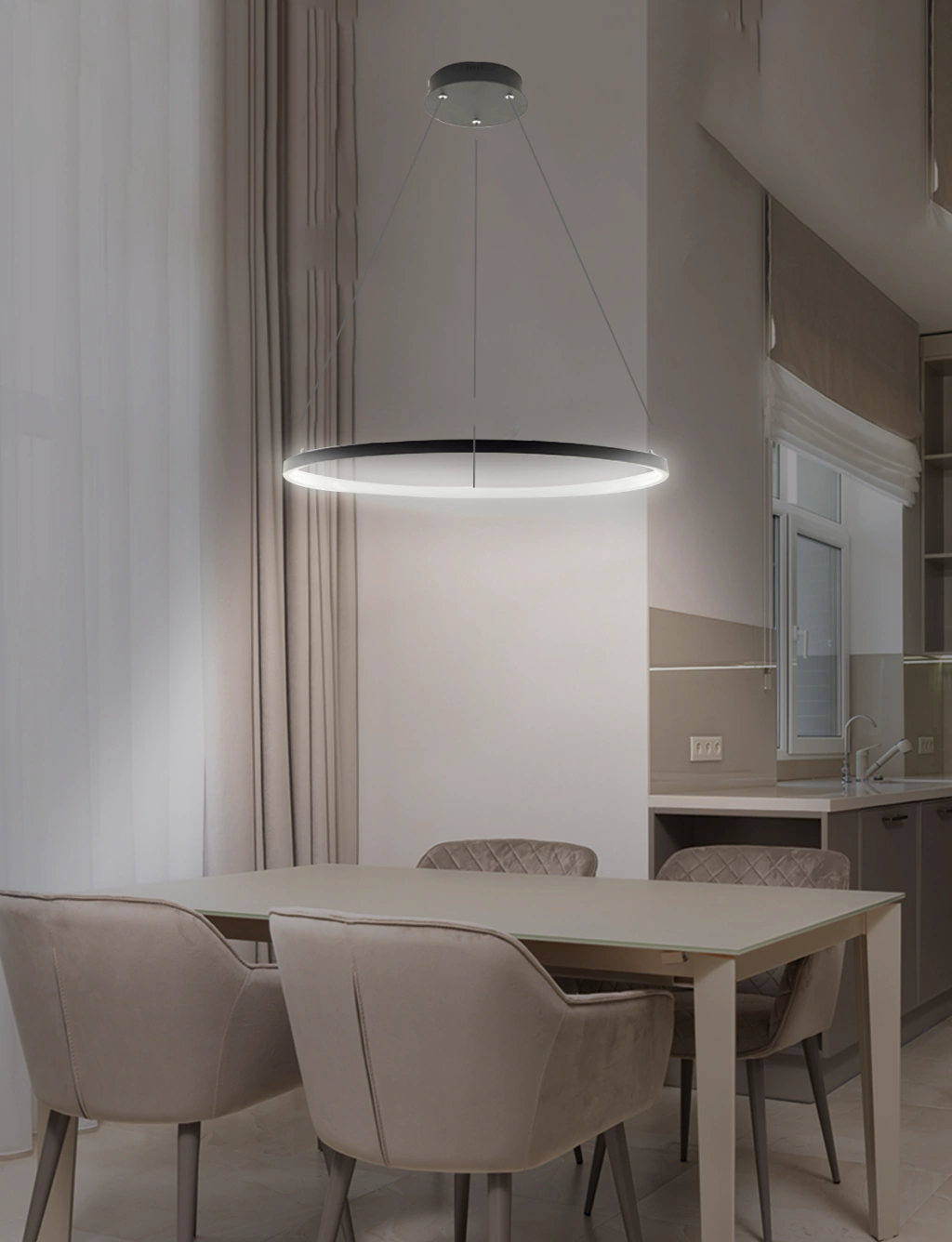 Ideal para instalarlo en: livings, ambientes con techos de doble altura (requiere adicionar cables tensores, consultar), comedores, vestíbulos, locales comerciales, o cualquier otro ambiente donde se desees una iluminación eficiente.