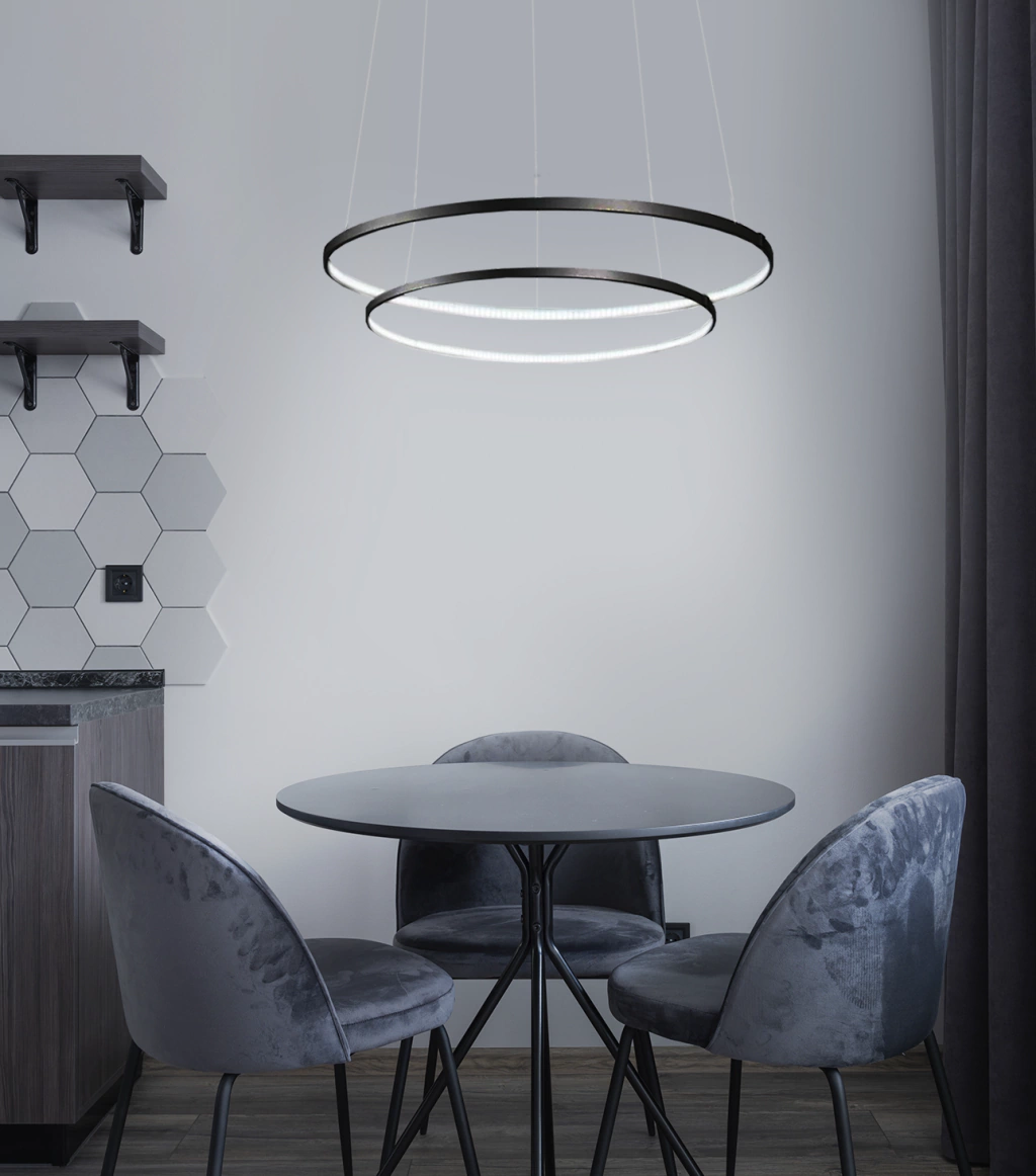 Ideal para instalarlo en: livings, ambientes con techos de doble altura (requiere adicionar cables tensores, consultar), comedores, vestíbulos, locales comerciales, o cualquier otro ambiente donde se desees una iluminación eficiente.