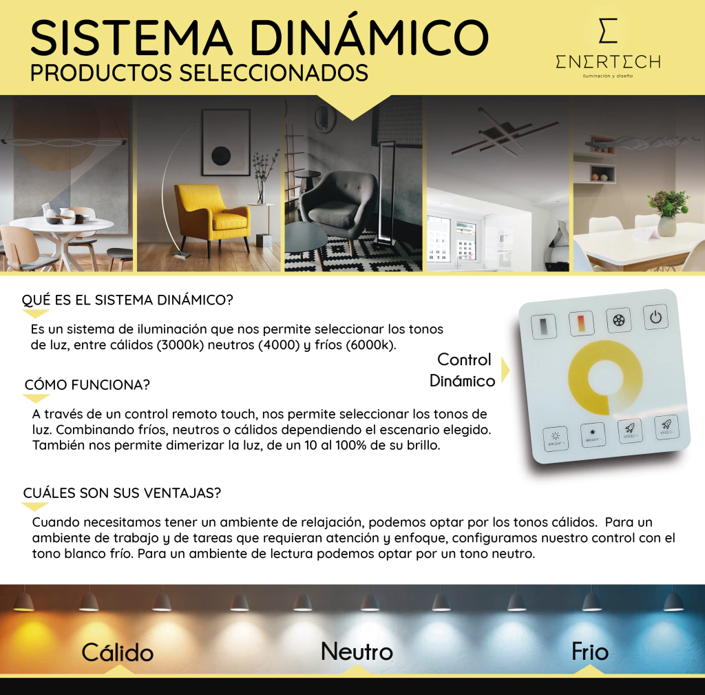 Sistema Dinámico de Iluminación: Un avance tecnológico que transforma ambientes con luz ajustable ofreciendo la posibilidad de elegir entre tonos cálidos, neutros y fríos para crear la atmósfera perfecta.